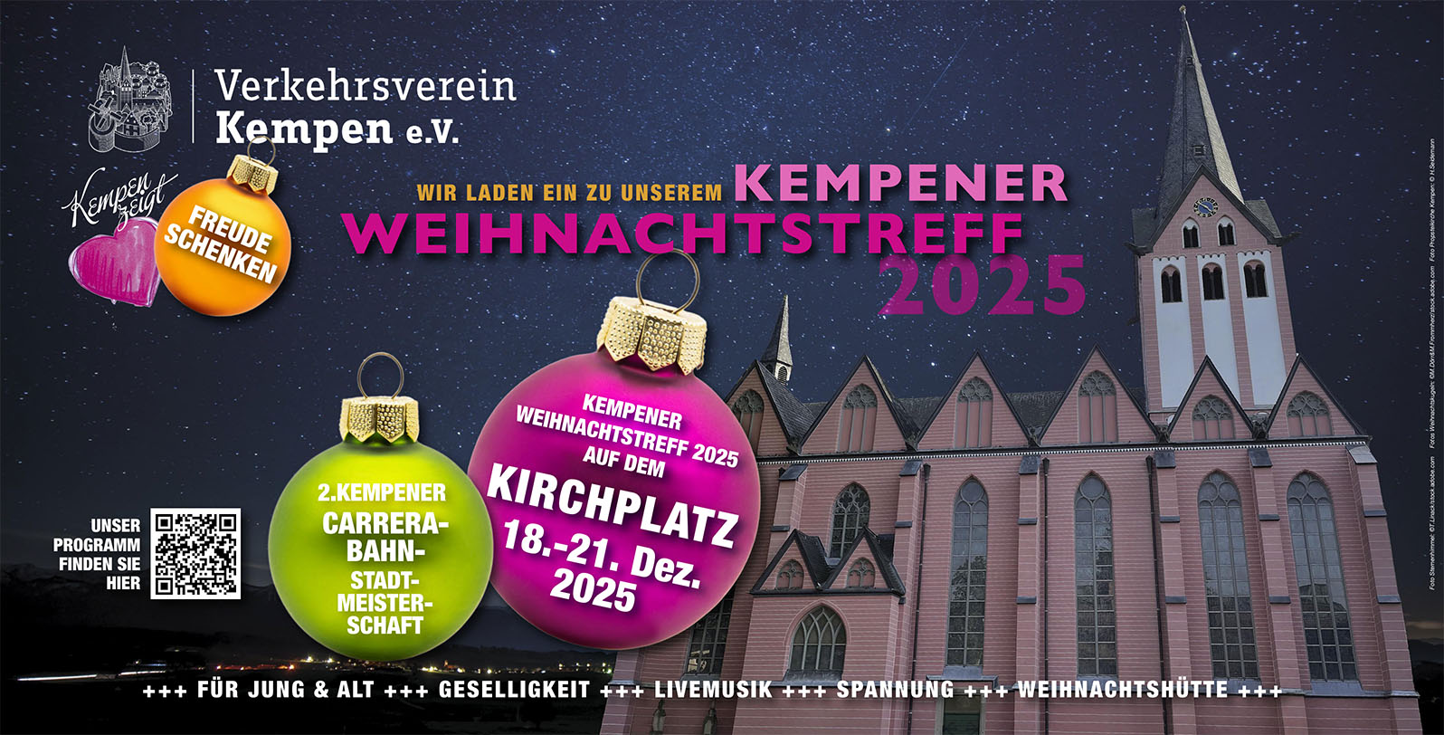 Der im Jahr 1929 gegründete Verkehrsverein Kempen steht seit seiner Entstehung für eine vielfältige und kreative Unterstützung der Heimatstadt. Seit vielen Jahrzehnten fördert der Verein kulturelle Veranstaltungen, betreibt aktiv Heimatpflege und Heimatkunde und trägt zur Völkerverständigung bei, unter anderem durch Städtepartnerschaften.